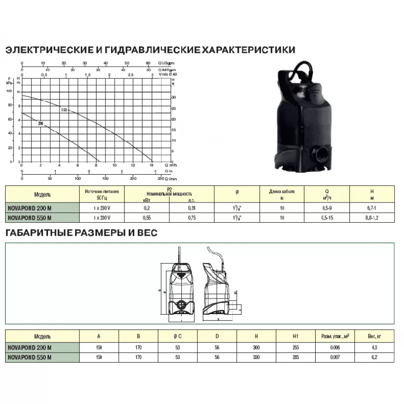 Схема дренажного насоса DAB NOVAPOND 550 M
