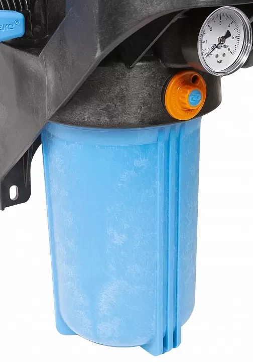 5. Установите на место гидроаккумулятор и колбу фильтра. ВНИМАНИЕ! Убедитесь в правильной установке уплотняющих резиновых элементов гидроаккумулятора и колбы фильтра. Предварительно необходимо установить выбранный Вами фильтрующий картридж.