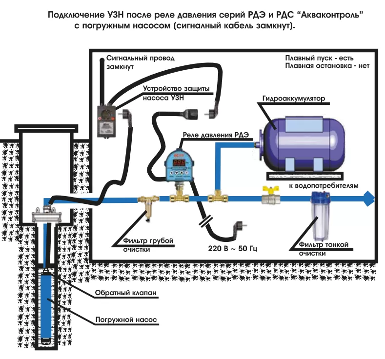 Плавный пуск насоса Акваконтроль УЗН-1,5С с защитой (скважинный насос)