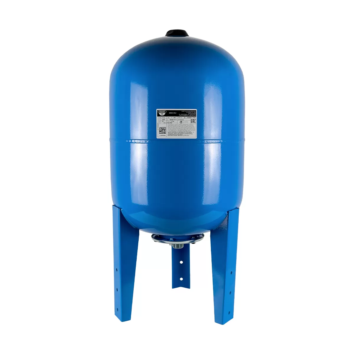 Гидроаккумулятор выполнен в вертикальном исполнении и оснащен боковым подключением с диаметром 1", что упрощает установку в системе водоснабжения и позволяет сэкономить пространство.