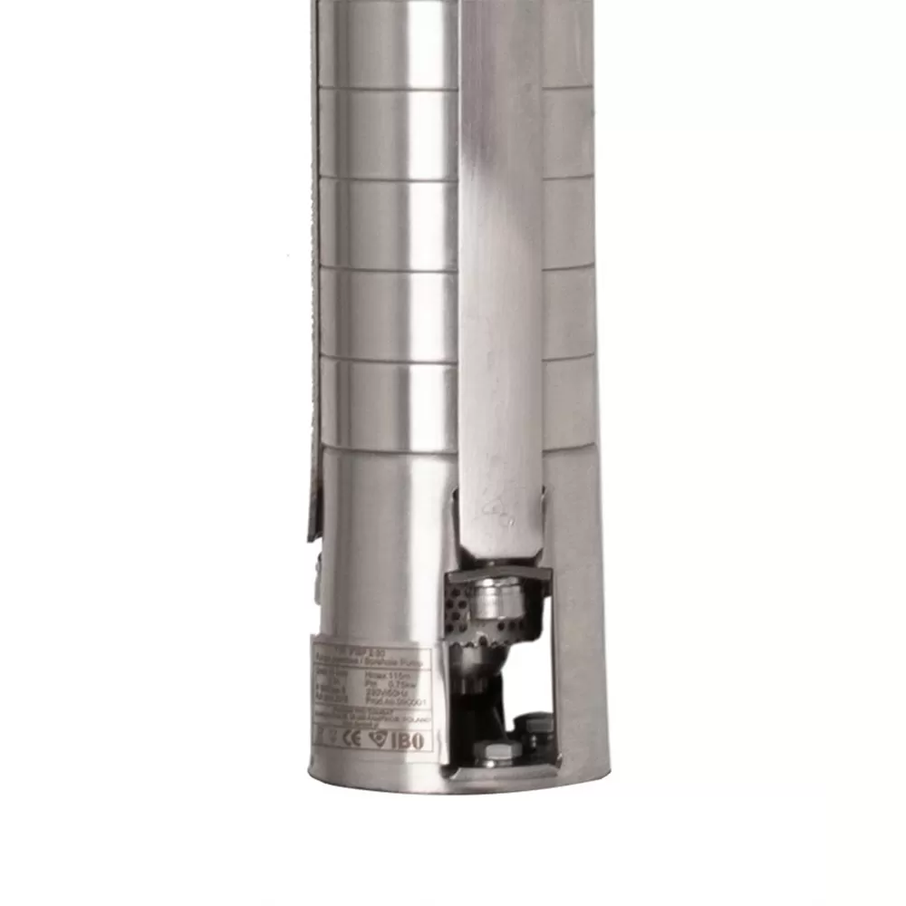 Погружной насос для скважины IBO 3ISP 2/22 диаметром 76 мм выполнен полностью из нержавеющей стали, предназначенные для установки в скважинах диаметром не менее 90 мм. Максимальное содержание песка в воде – до 0,3%. Насос IBO 3ISP 2/22 является одним из самых прочных в отношении конструкции насосом для глубоких скважин благодаря используемым материалам. Заборная часть и напорный патрубок, корпус, вал и роторы 100% изготовлены из нержавеющей стали. Насос поставляются в комплекте с 3–дюймовыми масляными двигателями. Скважинный насос обладает сбалансированными напорно-расходными характеристиками. Максимальный напор насоса составляет 80 м, максимальная производительность равна 3 м³/час, при этом мощность электродвигателя 550 Вт. Насосы ИБО серии 3ISP являются первыми насосами на Белорусском рынке, полностью изготовленными из нержавеющей стали диаметром 76мм. Насос комплектуется кабелем 1 м, предназначенный для погружением в воду. По желанию заказчика возможно удлинение кабеля на любую длину.