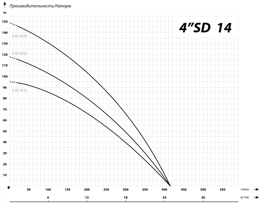 Трехфазный глубинный погружной насос IBO 4SD 14/20 диаметром 98 мм с повышенной устойчивостью к песку. Насос IBO 4SD 14/20 доступен к покупке с двигателями IBO и итальянскими двигателями IBO ITALY. В насосе IBO 4SD 14/20 используется технология «плавающих лопастных колес», а также для основных рабочих элементов насоса применяются износостойкие материалы: латунный нагнетательный патрубок, корпус, вал и сетка фильтра выполнены из нержавеющей стали AISI 304 / а также лопастные колеса выполнены из высококачественной пластмассы, Благодаря этому насос IBO 4SD 14/20 имеет повышенную стойкость к песку. Насос комплектуется кабелем 1 м, по желанию его можно нарастить до нужного размера. Скважинный насос IBO 4SD 14/20 имеет отличные характеристики. Напор насоса в максимальной точке составляет 118 м, а производительность достигает максимального показателя в 24.9 м³/час. Мощность двигателя составляет 5500 Вт, то вполне неплохо для насоса с такими напорно-расходными характеристиками. Насосы серии SD марки ИБО были первыми насосами на рынке, названными «анти–песочными». Они по прежнему являются одними из немногих скважинных насосов на рынке, которые имеют конструкции с такой высокой устойчивостью к песку. Максимальное содержание песка в воде – до 5%. Насос IBO 4SD 14/20 можно применять как аналог насосов ЭЦВ.