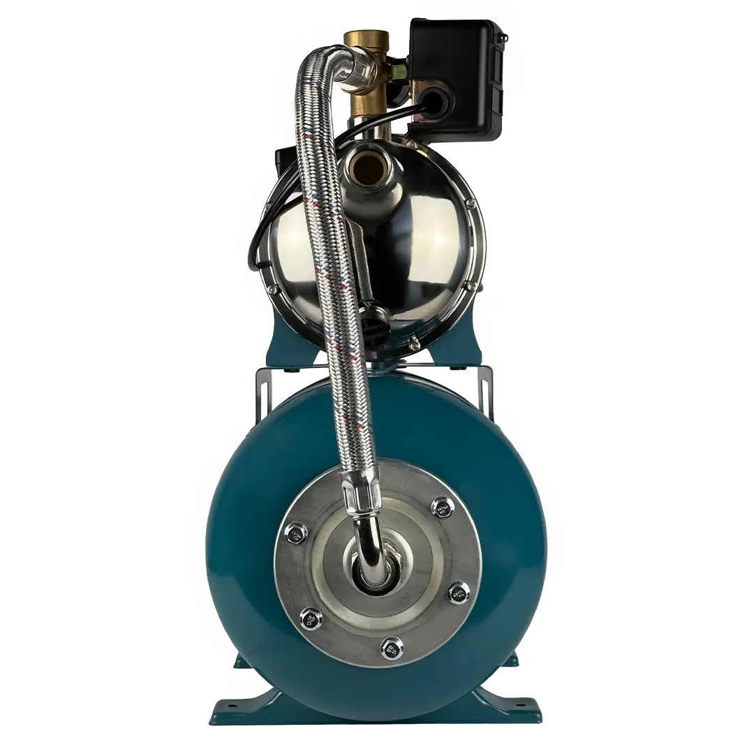 Насосная станция IBO AJ 50/60 24л+защита по сух,ходу оснащена системой увеличивающей мощность всасывания благодаря использованию трубки Вентури, благодаря данной системе насос способен поднять воду с глубины до 8 метров. Корпус насоса и вал в части, контактирующей с водой, выполнены из нержавеющей стали (версия INOX). Насосная станция имеет производительность в 3.6 м³/час, данной производительности будет достаточно чтобы организовать односемейного дома. За давление воды из крана отвечает напорная характеристика, максимальный напор в насосной станции IBO AJ 50/60 24л+защита по сух,ходу достигает 50 м. Насосная станция состоит из поверхностного самовсасывающего насос, системы автоматики на базе реле давления и манометра, гидроаккумулятора объемом 24 л. Насос имеет шнур питания с вилкой 0.5 м. Двигатель насоса оснащен тепловой защитой и имеет мощность в 1100 Вт.