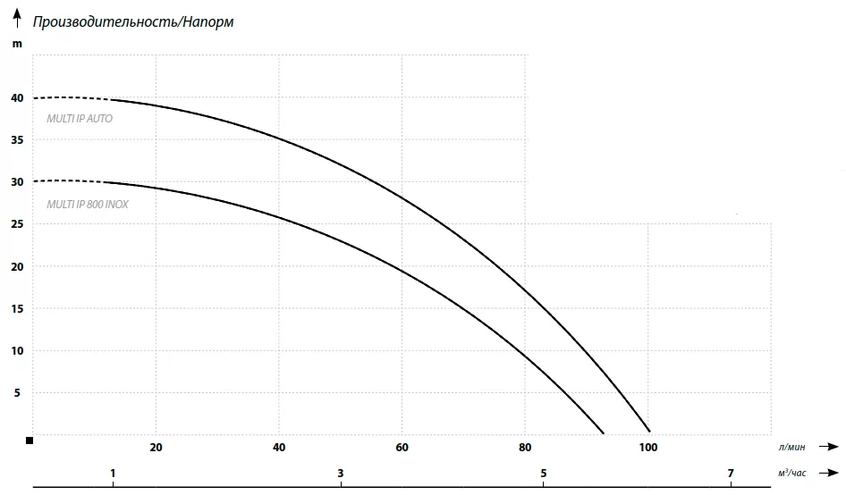 Графические характеристики дренажного насоса MULTI IP 800 INOX
