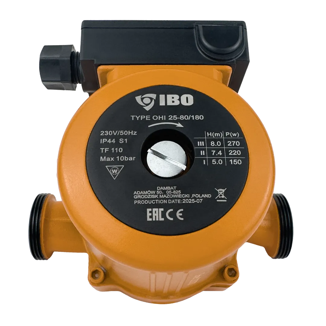 Этот насос обладает высоким уровнем защиты (IP44 / B) и может работать при температурах от 2°C до 110°C. Материал корпуса из чугуна и крыльчатки из технополимера обеспечивают превосходную прочность и долгий срок службы. С технической точки зрения, он имеет максимальное рабочее давление 10 бар и подходит для чистой воды. Кроме того, наш насос OHI 25-80/180 (IBO) предлагает три скорости работы, что позволяет настроить его под конкретные требования вашей системы отопления. С сетью питания 220 В и частотой тока 50 Гц, он эффективно и экономично обеспечивает циркуляцию жидкости .