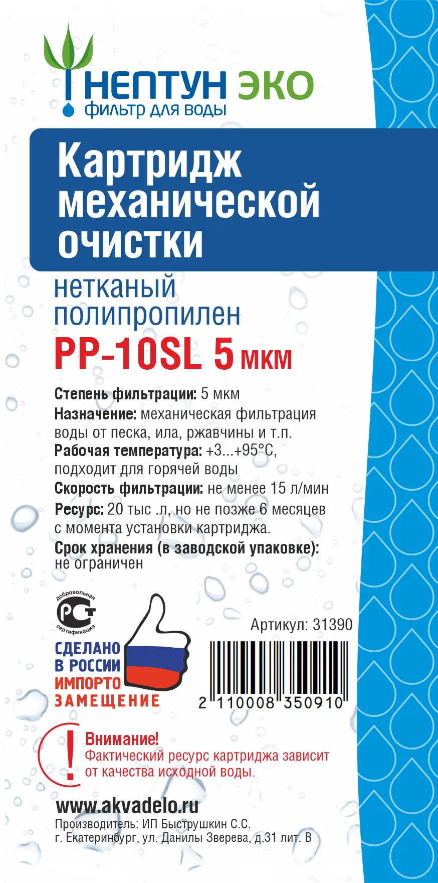 Картридж из нетканого полипропилена Нептун ЭКО PP-10SL 5 мкм
