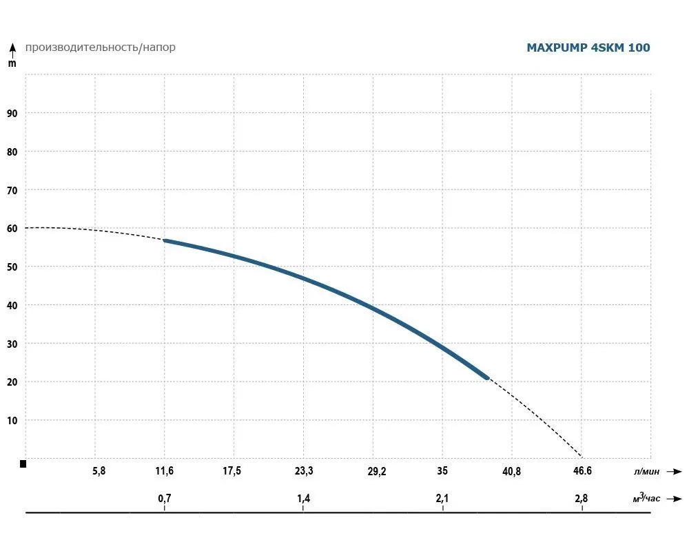 Погружной вихревой скважинный насос MAXPUMP 4SKM 100 кабель 15 метров отличается хорошей конструкцией. Гидравлическая часть насоса встроена непосредственно в вал двигателя. Насос изготовлен из хороших конструкционных материалов, корпус двигателя насоса изготовлен из нержавеющей стали, такие же втулки рабочего колеса и приводной вал, рабочее колесо и корпус напорной части производятся из латуни. Диаметр насоса 98 мм ( 4" ), но он легко помещается в скважину диаметром 125мм. В насосе используется маслозаполненный двигатель. Масло обеспечивает полную смазку подшипников двигателя, что гарантирует долгие годы эксплуатации без обслуживания. Насос может запускаться до 20 раз в час, что является хорошим результатом по сравнению с другими более дешевыми скважинными насосами. Насос оснащен однофазным двигателем мощностью 750 Вт. Максимальный напор насоса составляет 60 м, производительность насоса в максимальной точке достигает 2.9 м³/час. MAXPUMP 4SKM 100 кабель 15 метров комплектуется с завода кабелем 15 м.