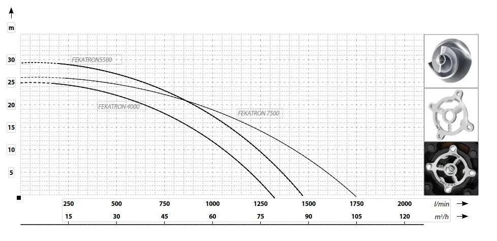 Погружной фекальный насос MAXPUMP FEKATRON 5500 широко используется в отводе сточных вод, канализационных системах и частных строениях. У насоса корпус и крыльчатка изготовлены из чугуна, что говорит о высокой прочности. Крыльчатка насоса MAXPUMP FEKATRON 5500 разработана для достижения большого напора и высокой производительности. В насосе установлен профессиональный измельчитель. Производительность насоса в максимальном значении 89 м³/час, а напор в максимальной точке 29 м. Насос работает на базе трехфазного двигателя мощностью 5500 Вт, 2900 об/мин, 380 В/50 Гц, IP 68.