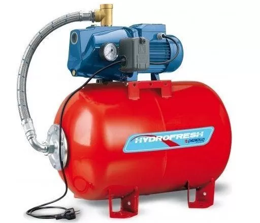 Насосная станция Pedrollo Hydrofresh JSWm 1AX 24CL — автоматическая система поддержания давления с цилиндрической емкость 24 литра, предназначенная для водоснабжения под давлением домов и дач.