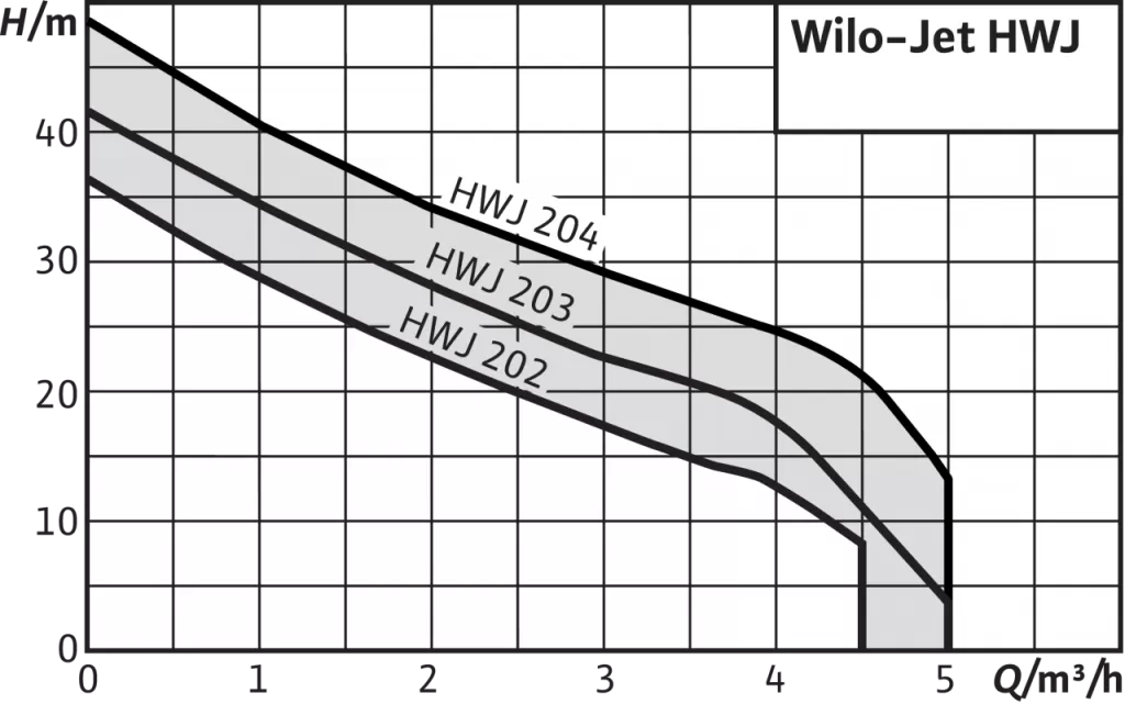 Насосная станция WILO HWJ-203-EM-50 - установка с центробежным насосом в компактном исполнении с горизонтальным всасывающим и вертикальным напорным патрубком, которая состоит из следующих компонентов: Самовсасывающий одноступенчатый струйный насос со сквозным насосным валом электродвигателя и не зависящим от направления вращения скользящим торцовым уплотнением. Напрямую присоединенный фланцами однофазный или трехфазный электродвигатель со встроенным термическим защитным выключателем и конденсатором в исполнении для однофазного тока. Система управления насосом с управляющим агрегатом и мембранным напорным баком, манометрическим выключателем и манометром (0–6 бар). Все детали, находящиеся в контакте с перекачиваемой средой, не подвержены коррозии.