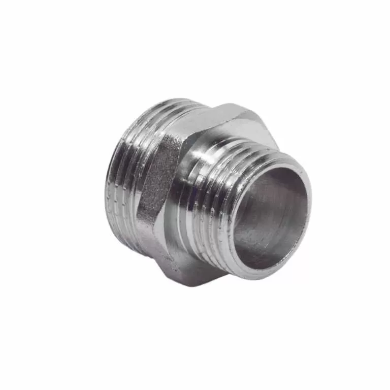 Ниппель переходной AQUALINK 3/4"М х 2"М – специальный соединительный элемент, цилиндр, на два конца которого снаружи нанесена резьба, что предусматривает монтирование системы путем вкручивания, используются для создания разъемных резьбовых соединений на трубопроводах холодного питьевого, хозяйственного и горячего водоснабжения, отопления, сжатого воздуха и на технологических трубопроводах, транспортирующих газы и жидкости, неагрессивные к материалу соединителей. Посередине данной конструкции для удобства присоединения предусмотрена шестигранная гайка, поэтому монтаж легко можно осуществить с помощью обычного гаечного ключа. Резьбовое присоединение ниппелей характерно для соединения в тех местах, где предусмотрена неоднократная разборка конструкции или же исключена работа с открытым пламенем. Применяется для соединения деталей трубопроводов с разной резьбой или для перехода с большей резьбы на меньшую.