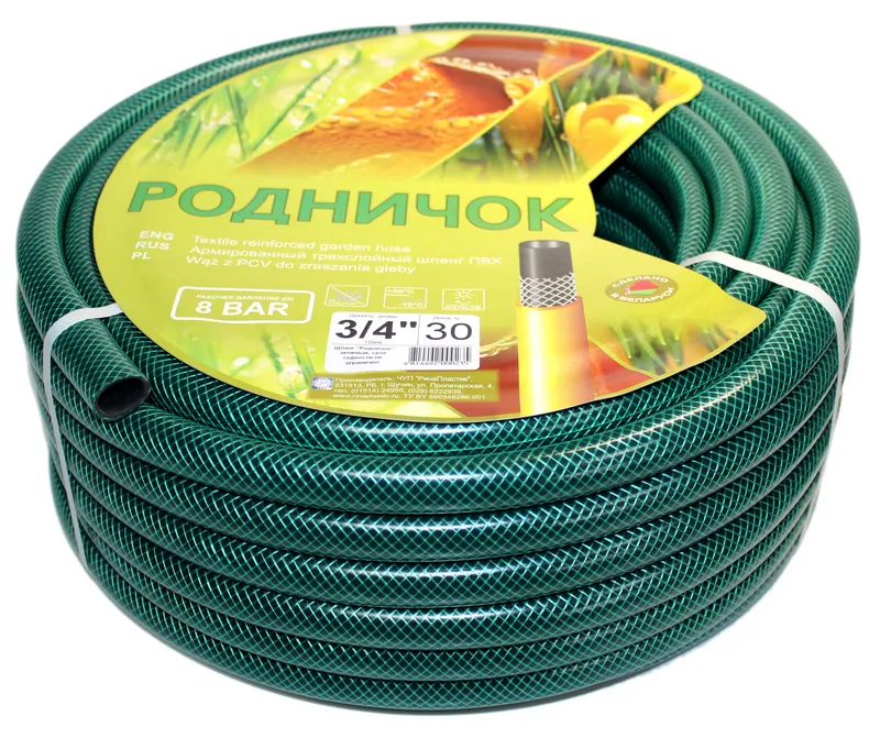 Шланг ПВХ поливочный армированный Родничок 3/4" 25м (зелёный)