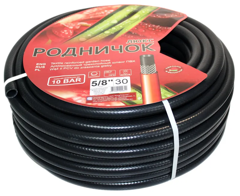 Шланг ПВХ поливочный армированный Родничок-Люкс 5/8" 20м (черный)