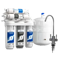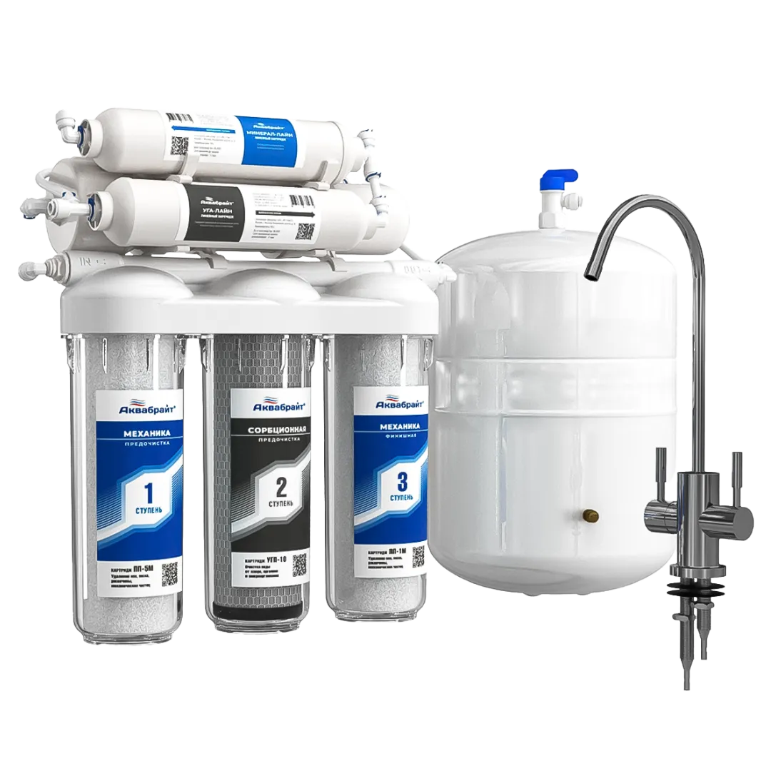 АБФ-ОСМО-6 Система очистки воды с обратноосмотической мембраной предназначена для очистки холодной воды от хлорорганических соединений, железа, пестицидов, тяжелых металлов, бактерий и вирусов. Очищенная вода предназначена для питья, приготовления пищи и т.п.