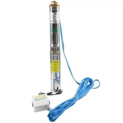 Асинхронный маслозаполненный двигатель с медной обмоткой имеет высокий ресурс и не требует технического обслуживания на протяжении всего срока службы. Крыльчатки насоса, имеют специальную форму лопастей, для повышения производительности. Блок управления содержит пусковой конденсатор и высокоскоростную тепловую защиту. Корпус насоса изготовлен из нержавеющей стали, а напорный фланец и соединительный элемент из латуни, что позволяет полностью исключить появление коррозии. Встроенный обратный клапан удержит воду в напорном трубопроводе, во время простоя насоса. В комплект входит: скважинный насос - 1 шт., блок управления - 1 шт, пищевой четырёхжильный сетевой кабель - 15м.