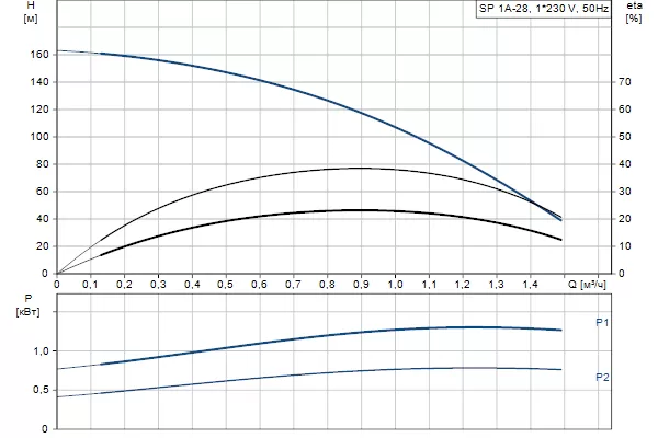 Насос Grundfos SP 1A-28 создан с применением новейших гидравлических технологий. Grundfos SP 1A-28 созданные специально для того, чтобы обеспечивать максимальную эффективность в периоды высокой нагрузки, насос имеет низкую стоимость и высокую надёжность эксплуатации вне зависимости от вида назначения. Grundfos SP 1A-28 обеспечивает высокую эффективность, высокое сопротивление абразивному износу (песку и иным абразивам), защиту от перегрева двигателя и простоту технического обслуживания. Также доступна готовая к применению система контроля и управления, предназначенная для постоянной оптимизации работы насосной системы. Максимальная производительность насоса 1.4 м3/час, максимальный напор 163 м при мощности электродвигателя 750 Вт. Насос работает от сети 220 в. Гарантийный срок на насос Grundfos SP 1A-28 составляет 2 года.