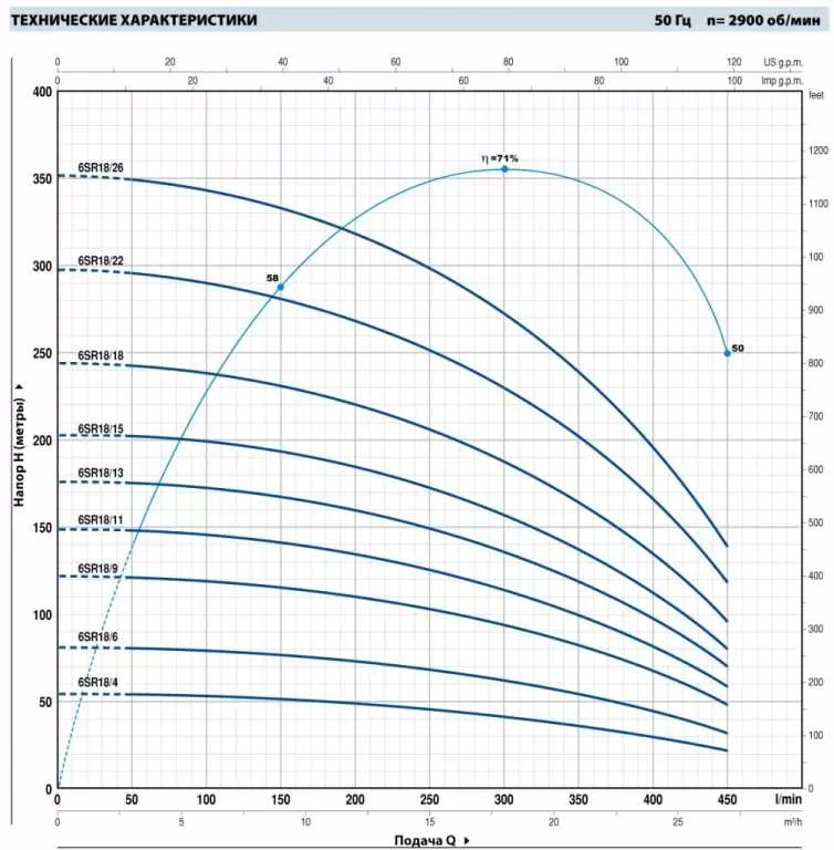 Глубинный насос Pedrollo 6SR18/13-P, отличается объективной ценой и надежной работой всех исполнительных механизмов. Насос Pedrollo 6SR18/13-P достаточно простой в эксплуатации и обслуживании, поэтому отлично подходит как для домашнего, так и промышленного применения.В основе работы Pedrollo 6SR18/13-P лежит конструктивно простой, но функционально успешный многоступенчатый центробежный принцип. Электрический двигатель подключается к агрегату через суппорт, в соответствии с нормативами международного стандарта NEMA. Мощность электродвигателя насоса составляет 11000 Вт . И при таких показателях мощности насос обладает максимальным напором в 176 метров и максимальной производительностью 27 м3/час. Функционирование Pedrollo 6SR18/13-P идентично большинству устройств, основанных на центробежных механизмах подачи воды. Жидкость втягивается в корпус устройства благодаря центробежной силе, создаваемой рабочими колесами, которые также проталкивают воду через все тело насоса "диаметр насоса 6"", а затем в нагнетающий патрубок "диаметр патрубка 3"", через который вода и попадает к конечному потребителю. Главной особенностью насоса Pedrollo 6SR18/13-P является малый диаметр корпуса агрегата, а также то, что перекачиваемая вода не касается стенок двигателя. Между жидкостью и корпусом движущей установки располагается прослойка из технологического масла, которая и предотвращает попадание мелких частиц непосредственно в исполнительный механизм. В то время как охлаждение электропривода происходит за счет верхнего способа забора воды, т.е. перекачиваемая жидкость находится всегда выше уровня расположения двигателя. Насос питается от сети в 380 в и комплектуется кабелем 4 метров.
