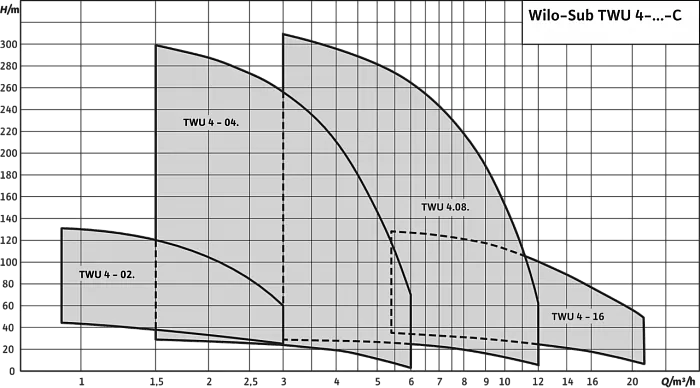 Полностью погружной многоступенчатый насос WILO TWU 4-0214-C (0,75) б/п с радиальными или полуосевыми рабочими колесами в секционном виде для вертикального или горизонтального монтажа со встроенным обратным клапаном. Это устойчивый к коррозии электродвигатель однофазного или трехфазного тока для прямого пуска с водогликолевой смесью. Абсолютно герметичные и пропитанные смолой самосмазывающиеся подшипники с обмоткой с изолирующей лакировкой. Охлажается электродвигатель за счет перекачиваемой жидкости.